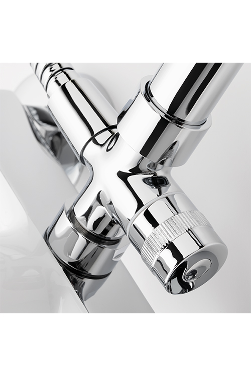 Este modelo incluye una barra extensible de acero inoxidable 304, ajustable entre 81,5 y 127 cm, que proporciona flexibilidad en la instalación y comodidad en el uso. Además, cuenta con un inversor de 2 vías que permite alternar fácilmente entre el rociador superior extraplano de Ø25 cm y la ducha de mano, adaptándose a todas tus necesidades de baño. El rociador superior posee una rótula orientable, lo que permite ajustar la dirección del agua según tu preferencia, ofreciendo una cobertura completa y uniforme.