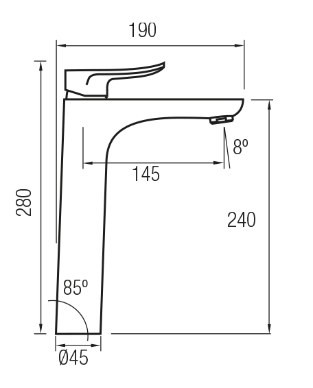 Grifo monomando de lavabo alto.