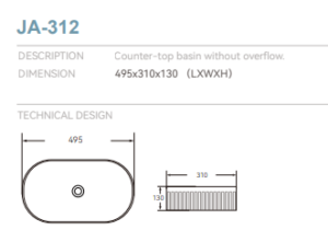 | Lavabo sobre puesto | Ja -310, Ja-312, Ja-313, Lavabo sobre puesto Ja-314 |