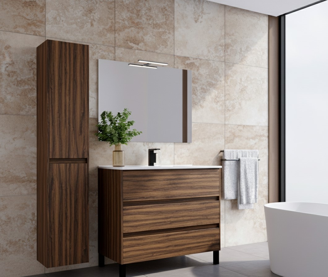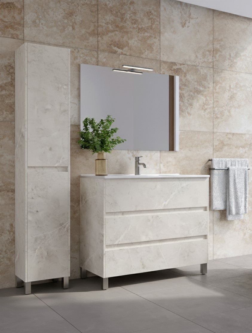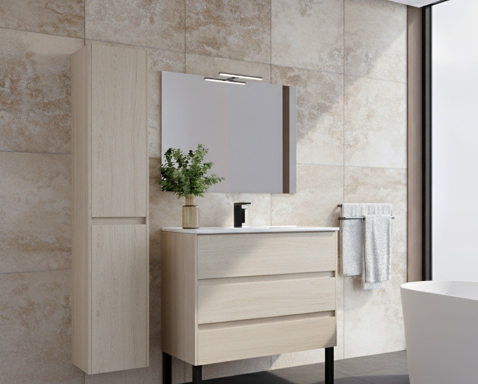 Conjunto mueble de baño Brisa con patas para una fácil instalación, compuesto por 3 cajones