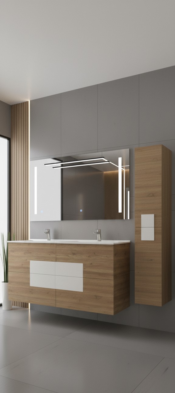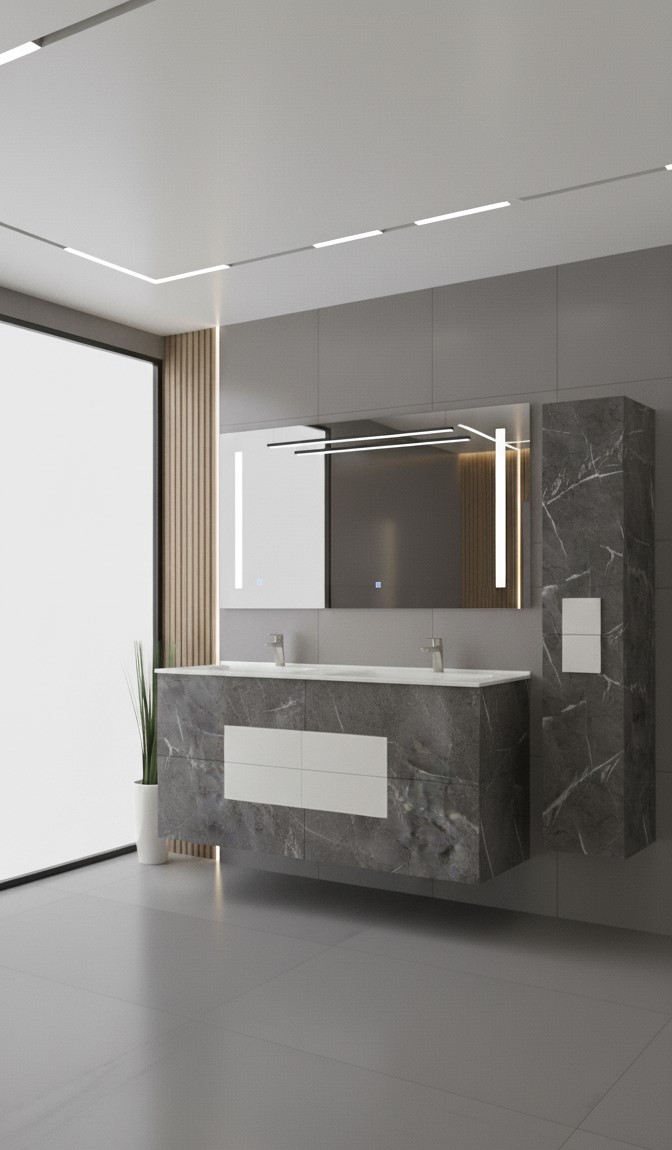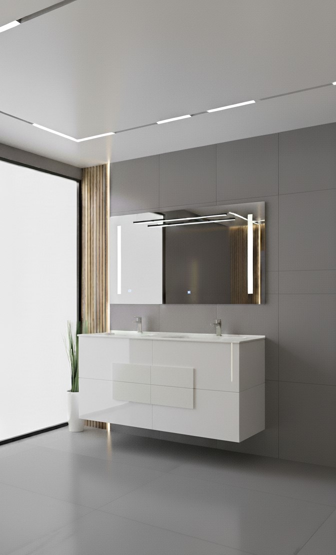 El mueble Cuadra 120 ofrece una excelente relación calidad-precio. Es la opción perfecta para renovar tu baño sin renunciar a la durabilidad o al diseño. Contacta con nosotros para más información sobre nuestros espejos LED y otras opciones de personalización.